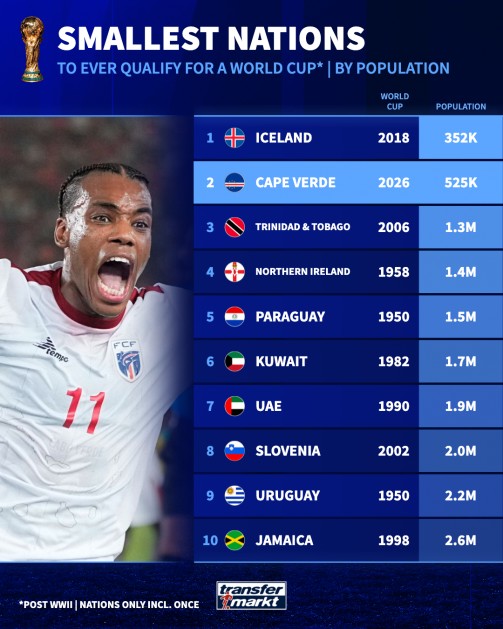 佛得角52.5万人杀入世界杯,刷新小国神话第二名!